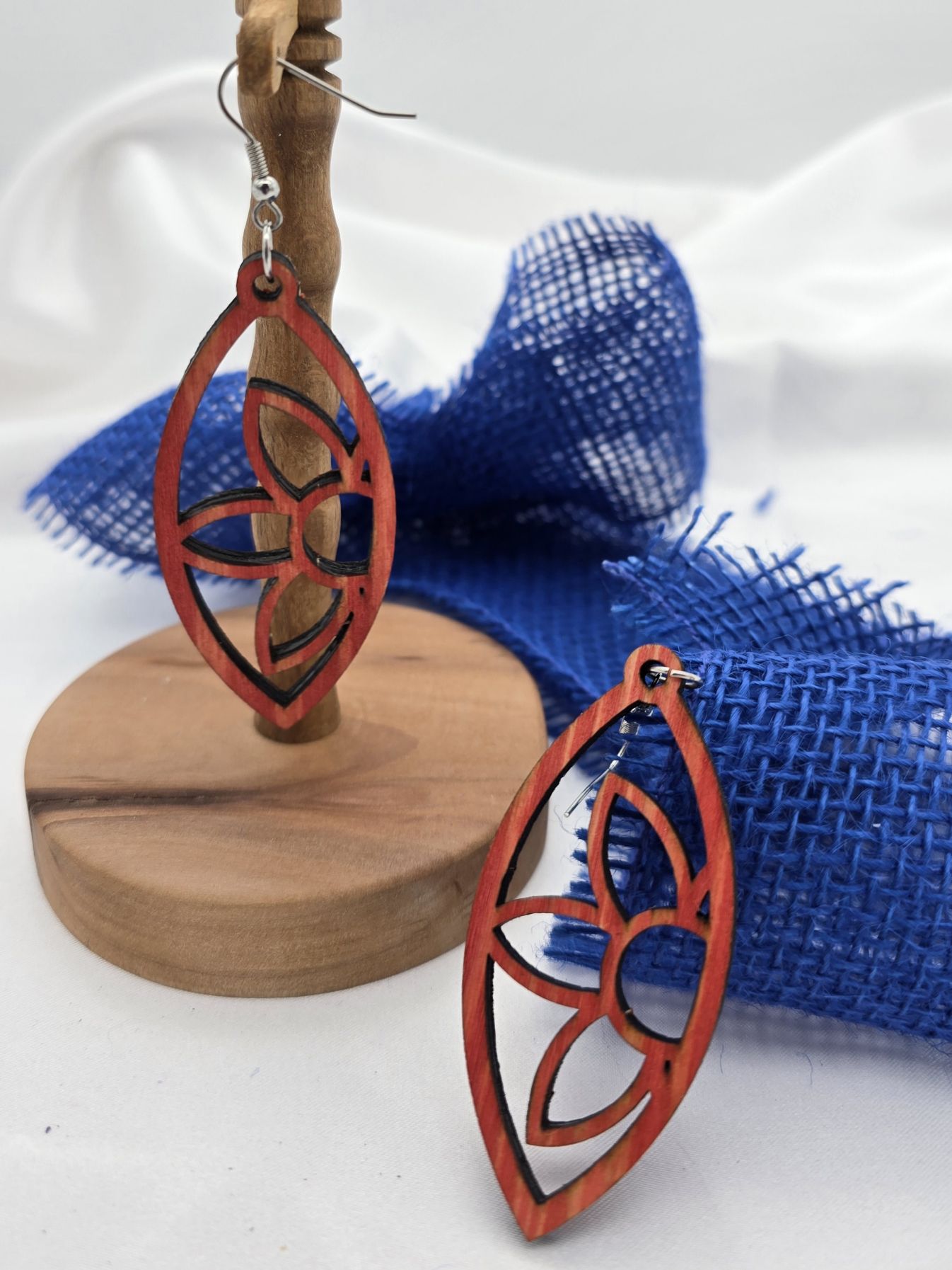 handgemachte Ohrringe aus Pappelsperrholz mit Edelstahlhaken.