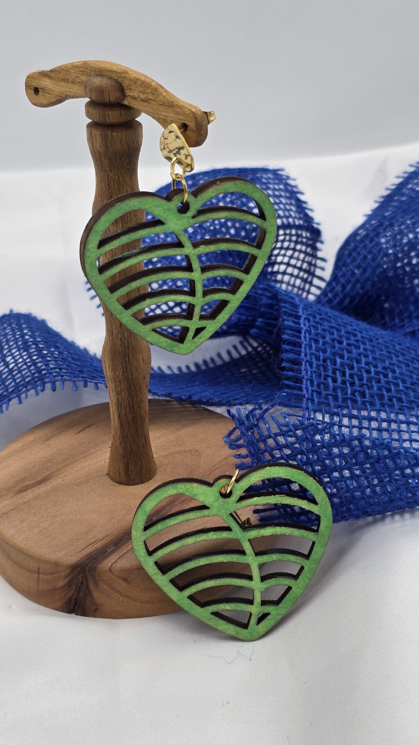 handgemachte Ohrringe aus Pappelsperrholz mit vergoldetem herzförmigem Stecker
