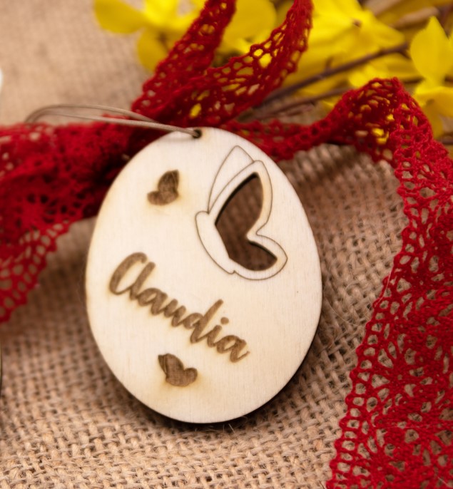 Dieser Osterei-Anhänger ist ca. 6cm hoch und 5cm breit und besteht aus 4mm dickem Pappel-Sperrholz.