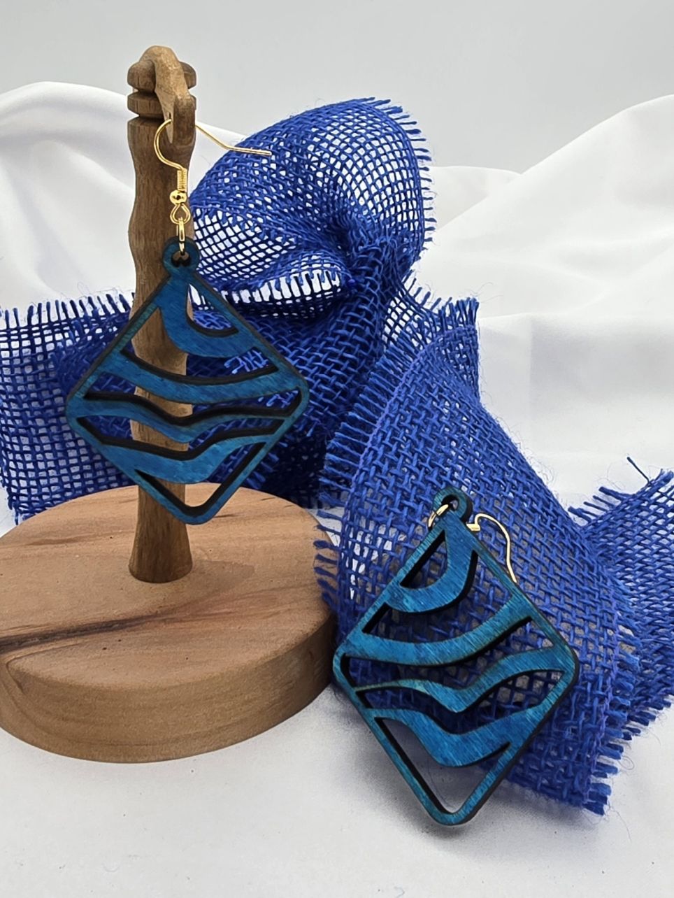 handgemachte Ohrringe aus Pappelsperrholz mit vergoldeten Ohrhaken.